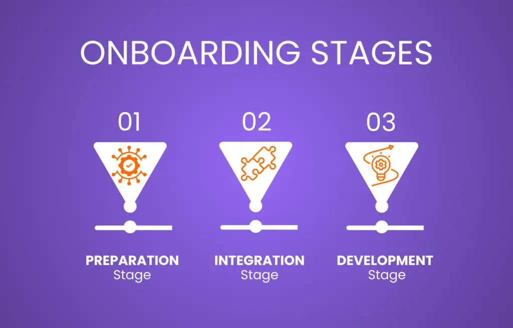 This comprehensive guide will detail the steps involved in onboarding employees through three phases; Preparation, Integration and Development. These stages aim to assist you in creating an onboarding process that smoothly integrates newcomers into your organization.