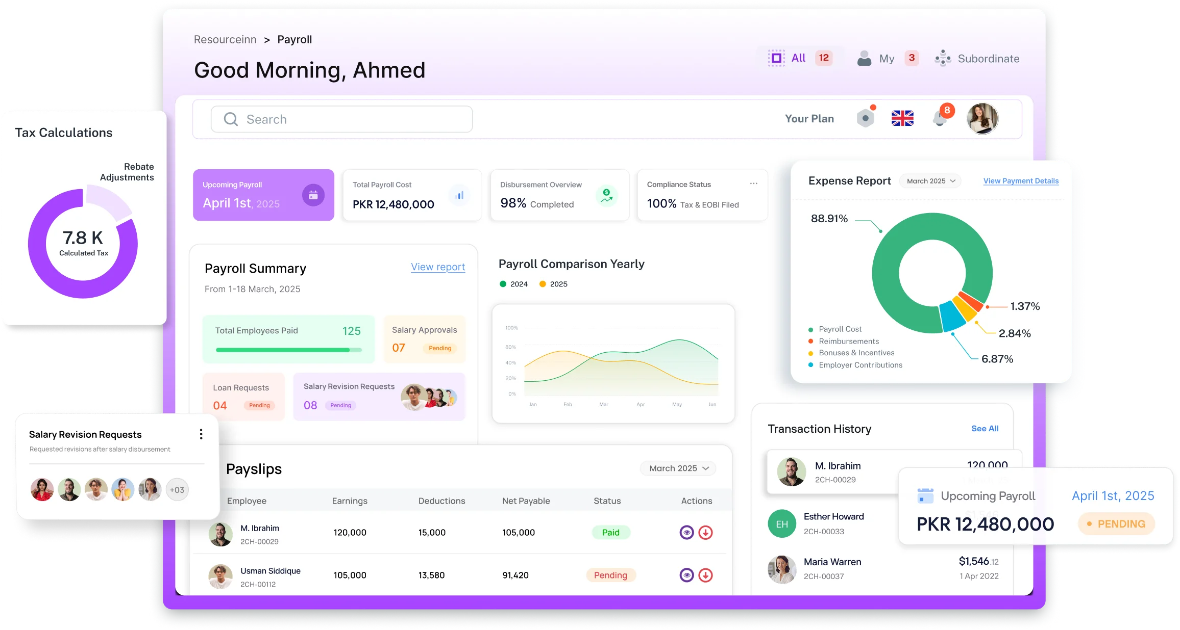 Eliminate compensation errors, stay compliant, and guarantee on-time pay with Resourceinn’s Employee Payroll & HR Management Software.