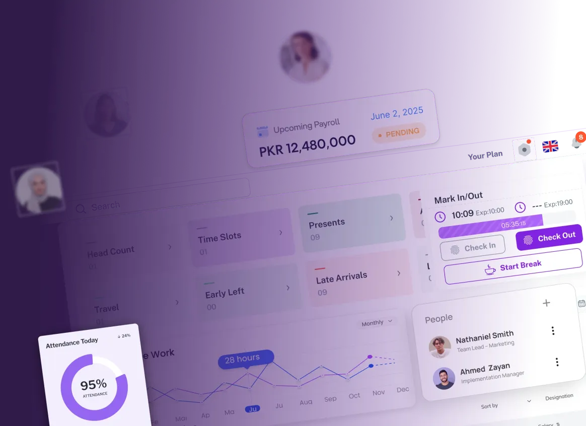 HR • Payroll • Finance • Communication • Accounting • Attendance • Training