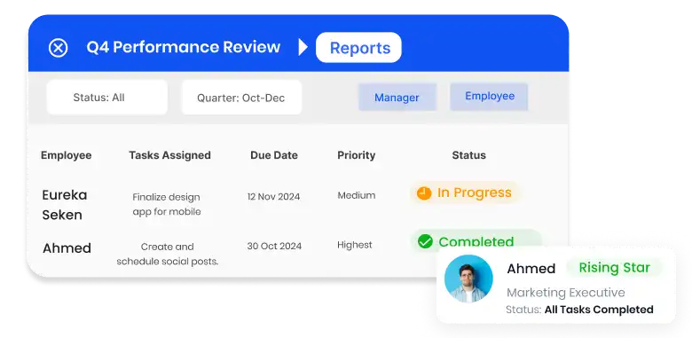 Assign weightage, set deadlines, and monitor employee performance in real time
