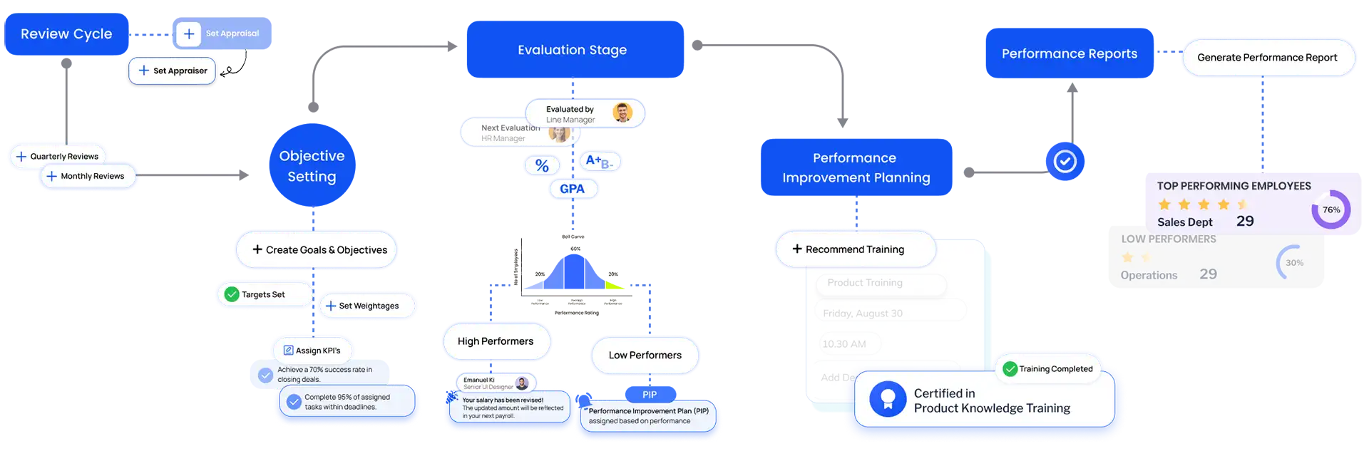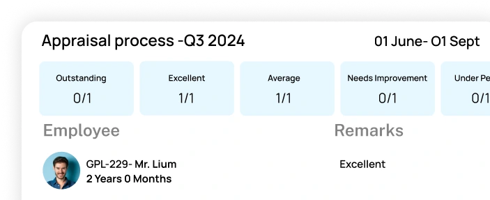 Resourceinn Performance Management System brings all evaluation stages into one platform, giving businesses a 360° feedback of employee, team, and departmental performance, quarter over quarter.