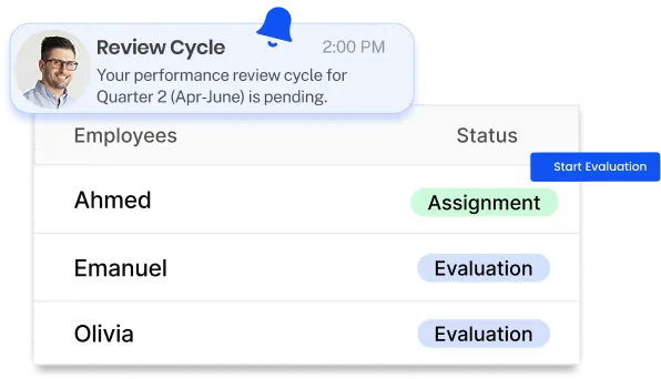 Develop powerful employee evaluation plans, craft surveys/interviews, and schedule assessments through performance management tools.